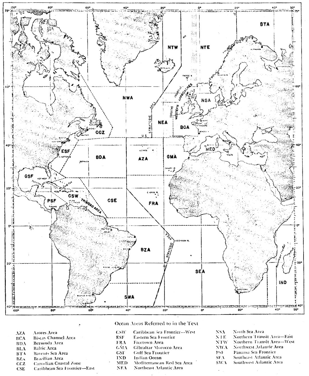 The U-boat war spread over all the oceans of the world, but the main battle was fought in the Atlantic. Consequently U-boat activity in other regions has not been discussed as completely as the Battle of the Atlantic. A standard subdivision into areas, which has been used throughout the text, is given in the frontispiece.