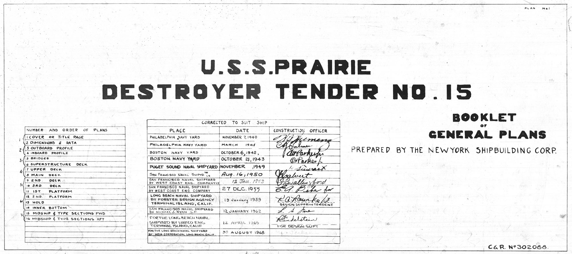 This is the Booklet of General Plans for Prairie as of August 1968 following availability at Long Beach Naval Shipyard.