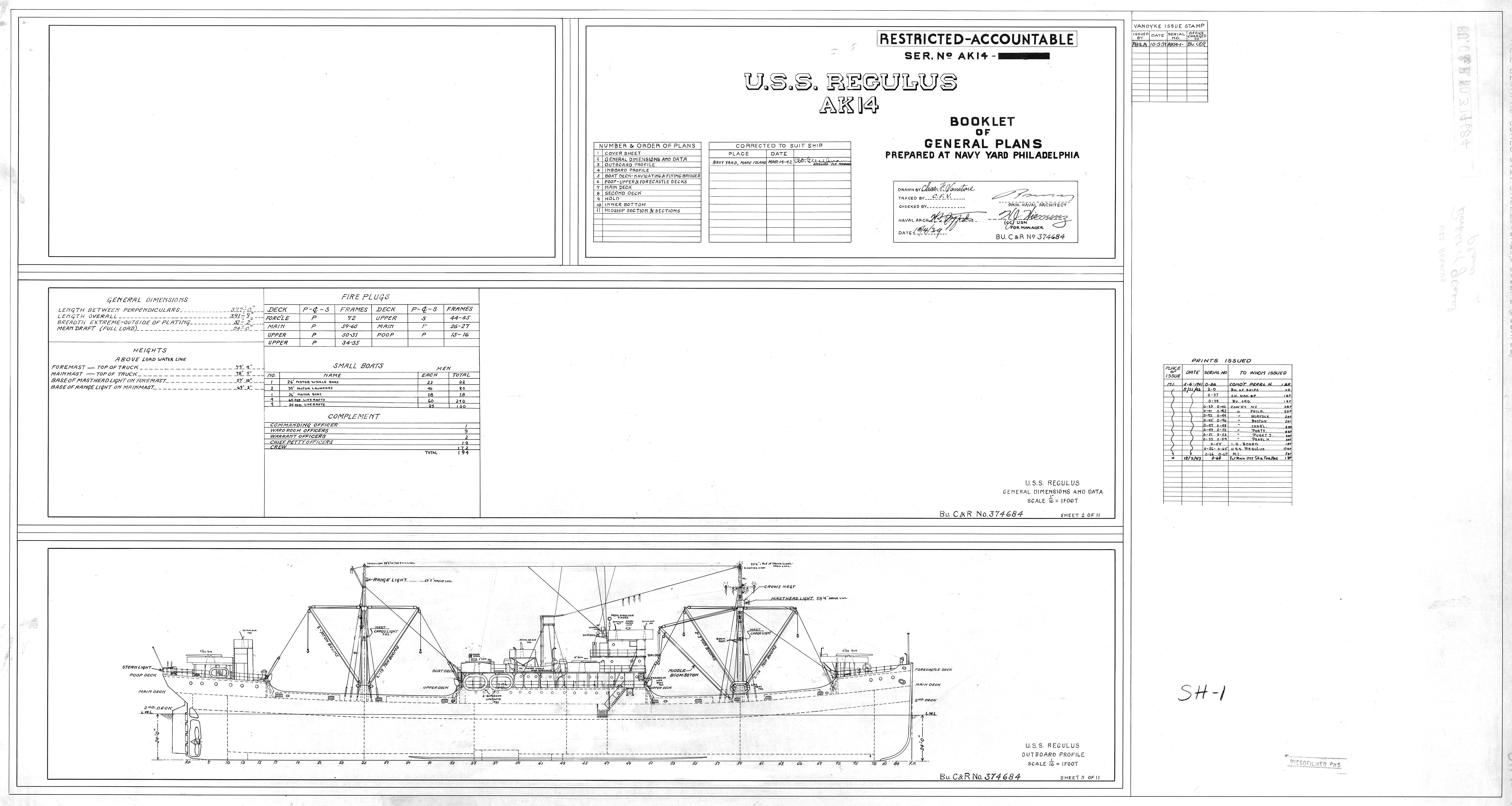 This is the Booklet of General Plans for Regulus as of March 1942 following availability at Mare Island Navy Yard.