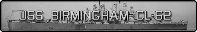 ![]() TEXT SIZE: small | normal | large | huge USS Birmingham CL-62 was a Cleveland-class cruiser that served in WWII and afterwards until 1947. In just over two years' time in actions in the Atlantic, Mediterreanean, and Pacific theaters, she racked up nine battle stars. What is also impressive is that she completed this record despite being heavily damaged enough to necessitate return to the US mainland for repairs twice. Documents: Ships Home | Researcher@Large Home |