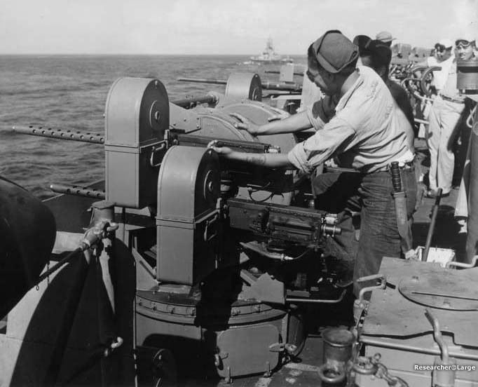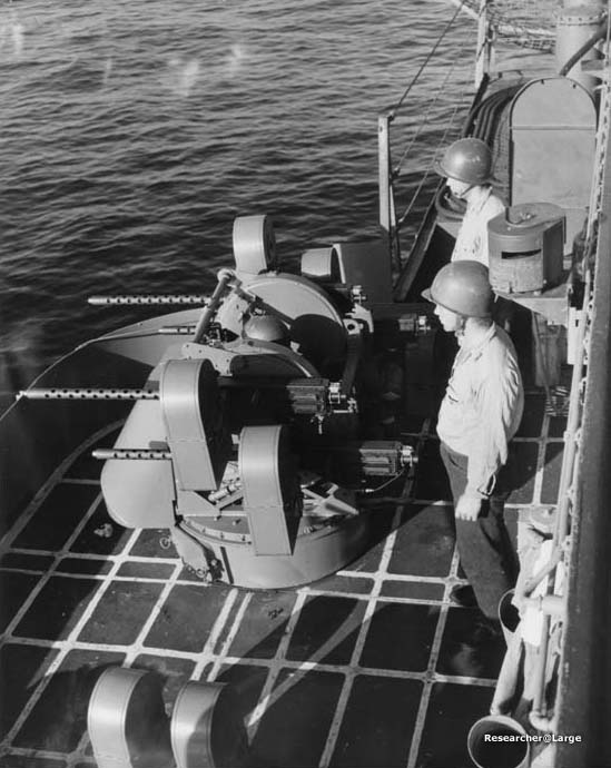 No ship's company officers or men had previous experience with this mount and installation and training would have been