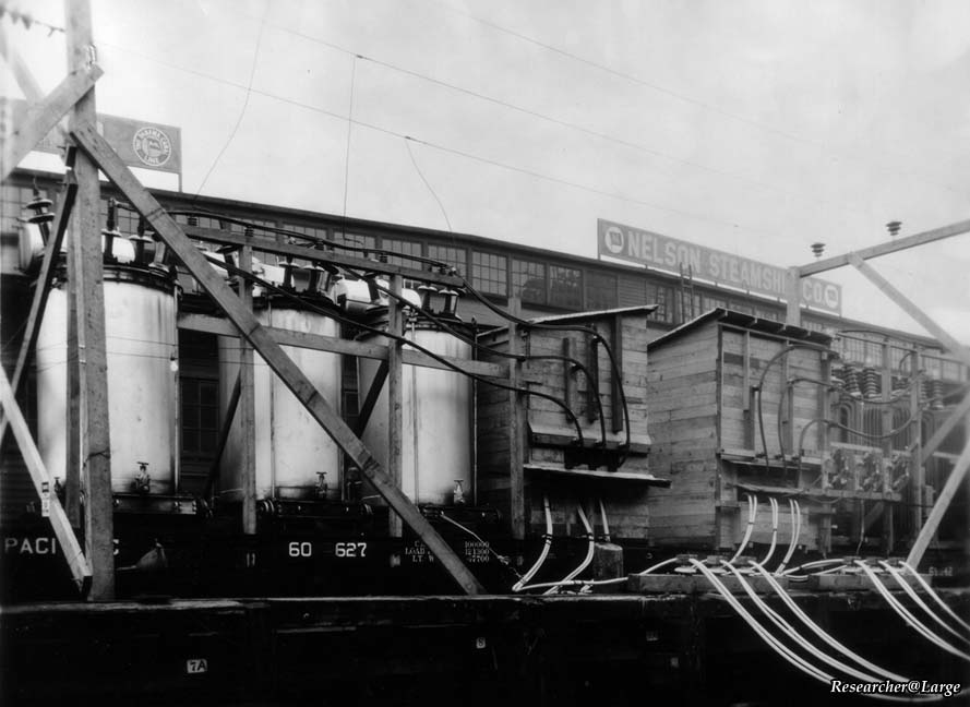 futher safety feature was installed, to open the circuit-breakers when the generator field was opened by routine operation, ground relays or unbalanced relays, by placing auxiliary contactors on the field switch operating mechanism in a circuit to a relay. The casings of the transformers also were grounded to the ship to operate the ground relay in case of a ground in any of the transformers. 5. The main turbine, in order to maintain the frequency of the city, 60 cycles, must run at 1800 r.p.m. which is 45 r.p.m. above the rating. Other operating data are: voltage, 4500; power factor, 70 to 100 percent with leading current; load to date, 2000 to 13,000 kilowatts; generator temperatures, below scales of instruments; and frequency variations, less than that of the city. The turbine has been run on the governor to take a fluctuating load while the city plants have taken a constant load. No troubles have been encountered in paralleling or in other operations.