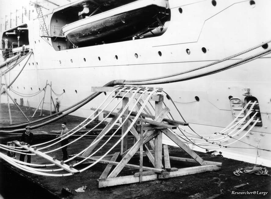 1. A careful examination of all boilers and machinery in operation during the full power trial held on 22 January, 1930, shows no major defects. The shrouding and tenons on all four main units were examined through the exhaust trunk and Inspection plates and as far as could be determined were in excellent condition, Slight leakages developed between the H.P. head and H.P. casing at the horizontal joint on "A" unit, between the ground joint of number one nozzle on the steam chest of "B" unit, and between the H.P. casing and L.P. casing at the corner along the horizontal joint of "D" unit. These leakages were not sufficient to interfere with the successful operation of the turbines.