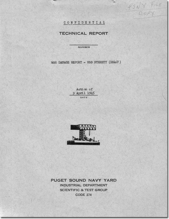 WAR DAMAGE REPORT - U.S.S. STERETT (DD407) Prepared by Puget Sound Navy Yard TABLE OF CONTENTS Appendix "A" - P.S.N.Y. Photos Nos. 3336-45 to 3346 inclusive Appendix "B" - P.S.N.Y. Sketch of Damage Ref : (a) C.O. STERETT let. DD407/A16-3/A7-3 of 13 April 1945. Serial 0129