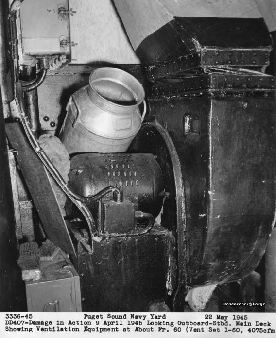 l. Damage to ventilation on this vessel was substantially as -,vould be expected in view of the nature and extent of structural damage. The only unusual features were as follows: