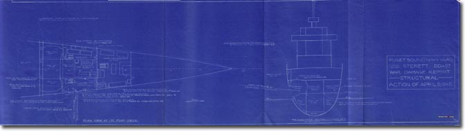 WAR DAMAGE REPORT - U.S.S. STERETT (DD407) SECTION II - STRUCTURAL l. The plane and bomb which struck the ship tore a large hole in the shell plating between the Main Deck and the First Platform and frames 54 to 60. The adjacent deck plating, framing, and bulkheads were damaged as shown on the sketch Appendix "B". Since the ship's report reference (a) gives a complete detailed description of the damage, no details will be given in this report. 2. Although the longitudinal strength of the vessel was substantially reduced, no evidence of excessive strain in the intact structure was found.