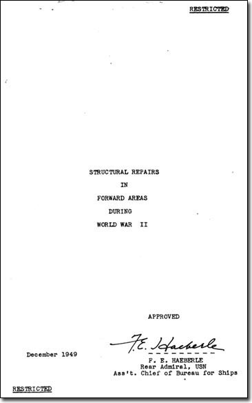 "Structural Repairs in Forward Areas During World War II" -BuShips Booklet dated December 1949.