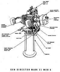Information for Modelers:The modeler should be aware that the Mk 51 should always be pointing the same direction as the mounts they were directing, as the two were supposed to be aimed on a parallel line and were in fact calibrated to each other. It was possible for the radar on the gun mount to point "offset" from the gun, as it was gimbled so that it could offset to compensate for taget motion.