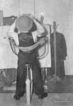 1. Reference (a) directed that sky lookout stations be provided at the Air Defense Officer's stations on all vessels, and that each sky lookout be provided a, suitable support having an adjustable seat, back, armrest and neckrest. 2. After study of various sample supports radically different each from the other as to size, style, comfort, cost and utility, the Interior Control Board has approved the support shown in the enclosures. The Board recognizes that the several types of supports studied each offer particular advantages. In making its decision, the ready availability of parts far the support shown in enclosures, relative ease of manufacture and installation, and minimum space and weight requirements were considered of importance. 3. Accordingly, the Bureau desires that the enclosures be used for guidance in manufacturing the supports required by reference (a). Motorcycle seats may be used, in lieu of the bicycle seats shown, if readily available locally, and if details of installation can be worked out without major modification of support dimensions. Similarly, materials may be selected to suit availability provided adequate strength is maintained. The web belt should be adjustable in length and at least four inches in width. 4. Forces Afloat are hereby authorized to proceed with the procurement and installation of subject supports. Supports are to be manufactured by ship's force, tenders or navy yards, whichever may be considered most expeditious by Force Commanders under existing circumstances. Installation is to be accomplished by ship's force in locations to be approved by the Bureau. 5. Necessary materials may be requisitioned from navy yards. E. G. KINTNER, By direction.